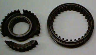To the left is a picture of the 3rd/4th gear hub and the operating sleeve that rides over it. These parts are from a 1987 Vanagon GL that I used to own.