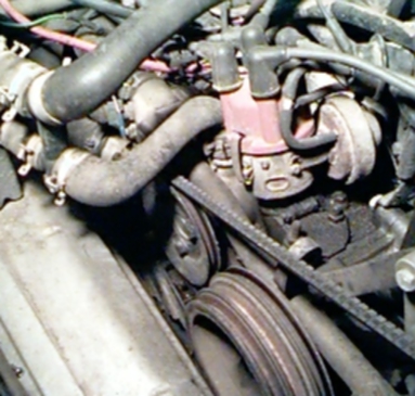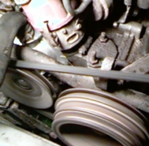 little bit from below. In the picture to the right, the pump is behind that single-groove pulley