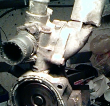 engine running, coolant was spewing out of a small hole in engine, just behind one of the pulleys.