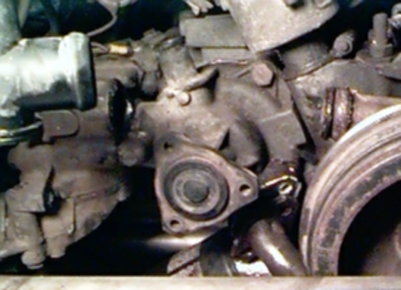 nothing holding the pump to the block, as seen on the right. Once the bolt/nuts are gone, the pump