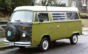 Speaking of front grilles, Karl Mullendore drove his Westy that is sporting a South African grille hidden under a bra. I was hoping for an clear shot of the grille, but Karl's Westy is not a very good nudist - the bra stayed on! Here's a closer shot so you can get an idea of the headlamp and driving light layout.