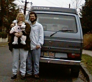 This is Doug Bensen's tan Westy. Last year, Doug's wife went into labor after the party, and their daughter was born the next day. This year, there were 3 Bensens at the party - the whole family. Glad you guys made it!