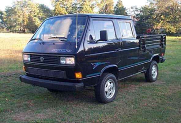 He also drives this stunning black '90 Syncro Double Cab Transporter.
